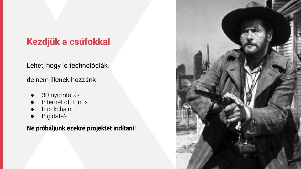 Borzasztó népszerű informatikai alkalmazási téma például a 3D nyomtatás – no de azt senki sem gondolja, hogy egy biztosítónak köze lenne hozzá. Hasonló a helyzet az Internet of Things (IoT, „dolgok internete”) trenddel. Ilyesmire nem fognak a biztosítók IT projektet indítani.